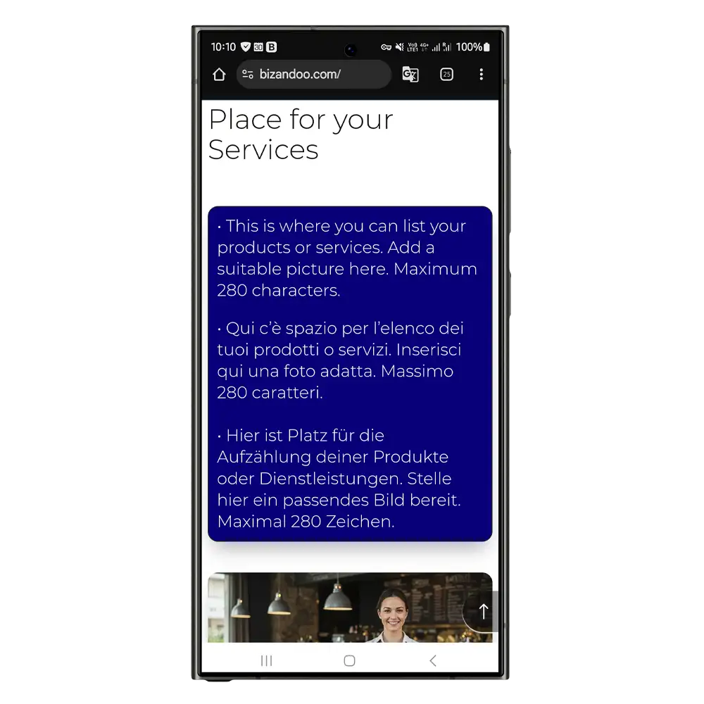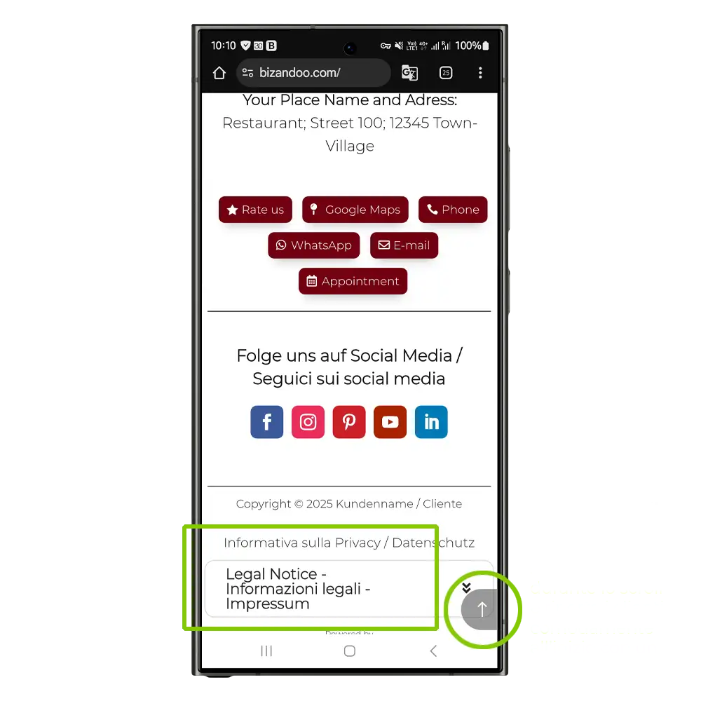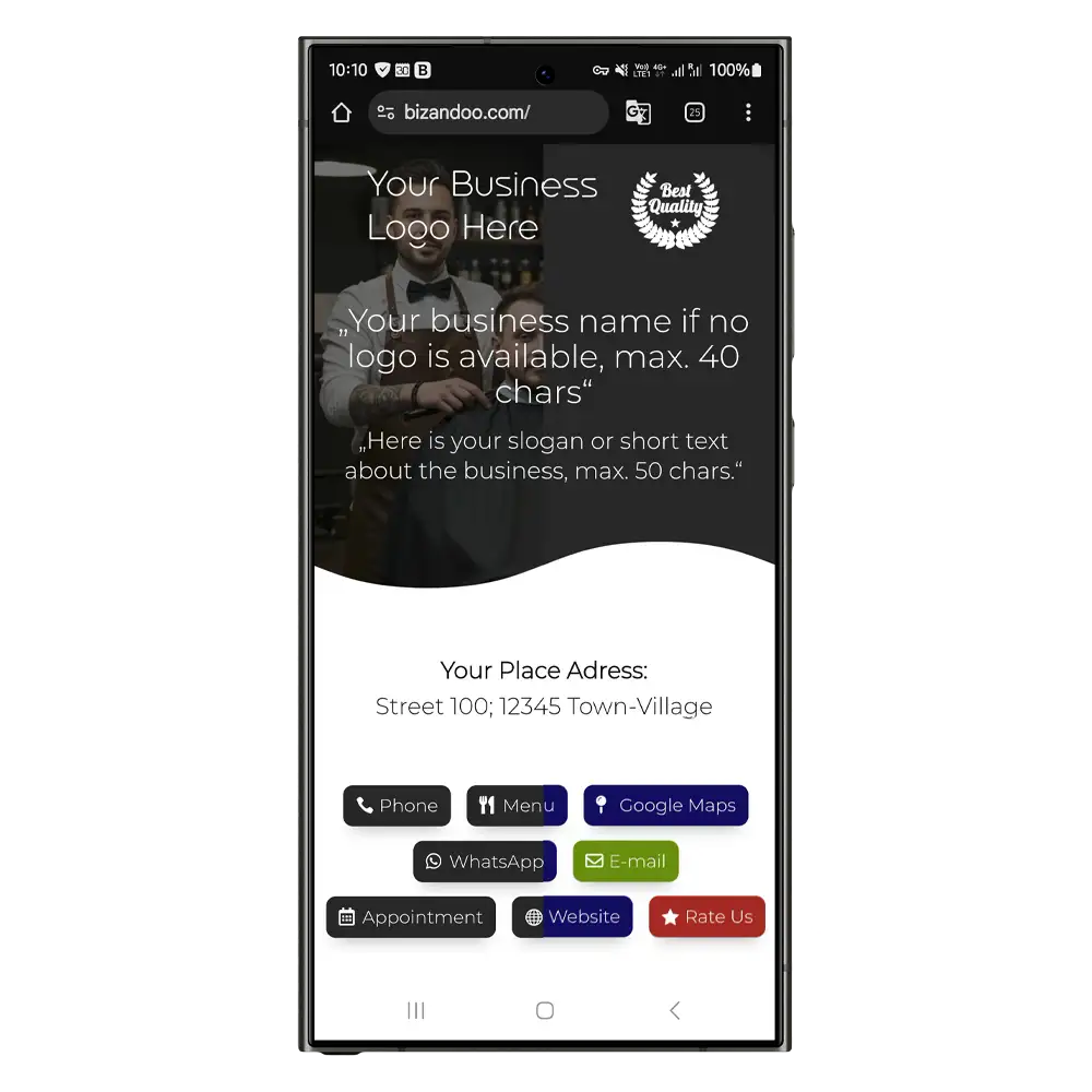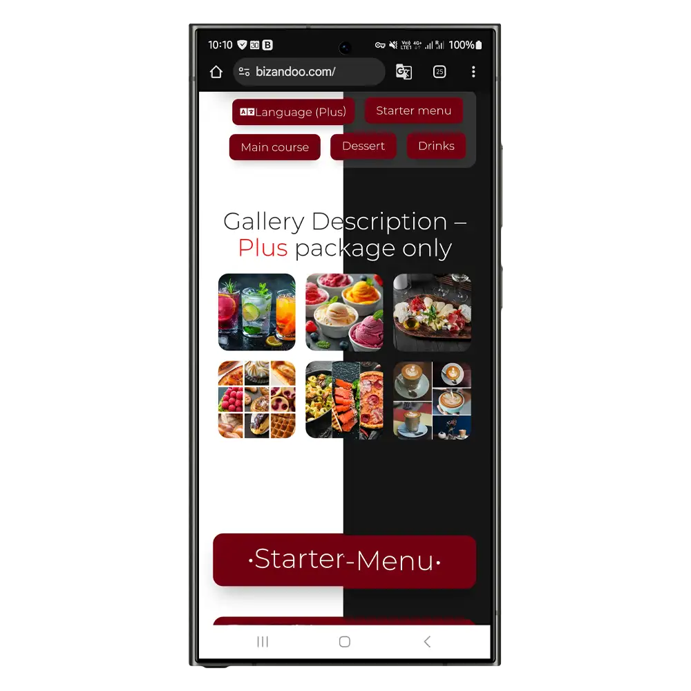 Nachfolgend siehst du den Aufbau der Bizandoo Smartpage und der Speisekarte.