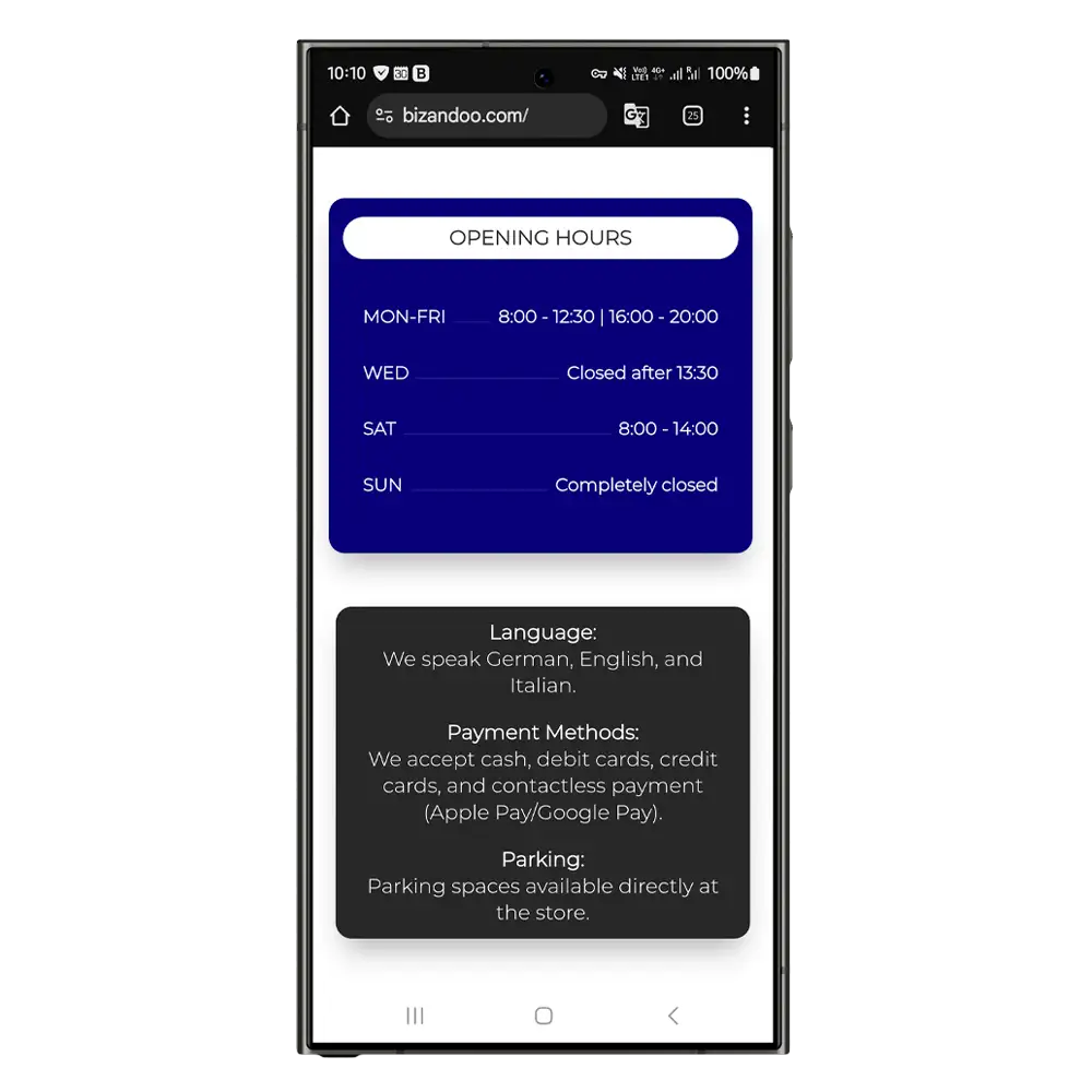 Unsere Pages und Speisekarten sind so smart konzipiert, dass deine Kunden alle wichtigen Informationen sofort im Fokus haben – ohne Ablenkung.